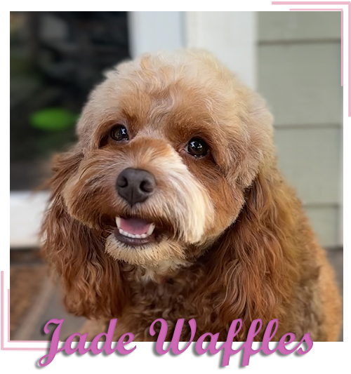 Jade Waffles is one of our very own puppies! Her parents are Kado and Jenny - both amazing, family oriented dogs. You're going to love her. Jade is athletic and loves to play fetch. She loves her city life with her amazing Guardian Family, who call her Waffles. We're always happy when she comes to visit us! Jade is an F2 Cockapoo, meaning she is a 2nd Genereration Cockapoo that is 50% Poodle and 50% Cocker.